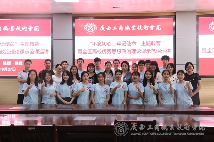 ??????? 本次全區(qū)高校優(yōu)秀思想政治理論課示范課巡講活動,邀請廣西民族大學馬克思主義學院院長陳媛教授主講。陳教授以《思想道德修養(yǎng)與法律基礎(chǔ)》第二章 堅定理想信念為主體,以“以理想信念領(lǐng)航 用青春奮斗圓夢”為主題,從“理想信念是人生的‘總開關(guān)’、崇高的理想信念具有偉大的力量、為理想信念奮斗的青春最美好”等三個方面進行分析。在整個講課過程中,陳教授以深厚的理論功底、翔實生動的案例,更是結(jié)合自身的成長經(jīng)歷,深刻地闡明了理想信念對個人、民族、國家發(fā)展的重要性。陳教授為師生們上了一堂精彩的示范課。