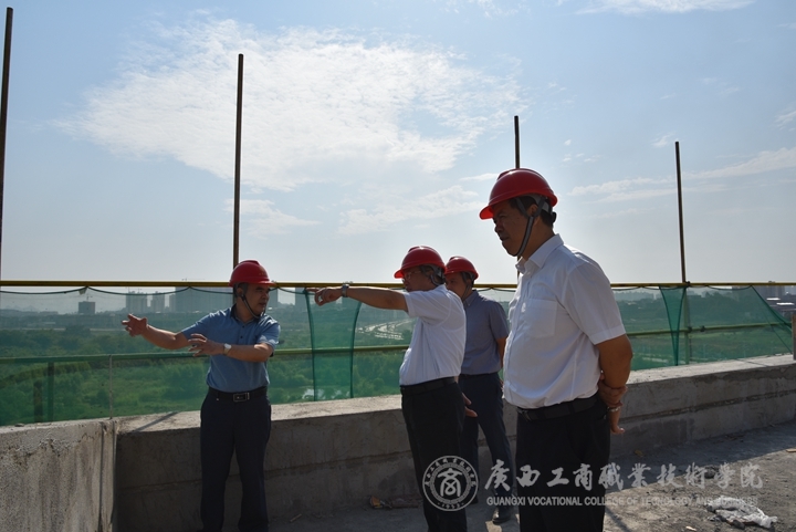 ? ? ? ? 在參觀完武鳴校區(qū)實景沙盤,了解學(xué)院武鳴校區(qū)的建設(shè)規(guī)模,基本規(guī)劃和施工建設(shè)計劃后,吳宇雄局長到武鳴校區(qū)(一期)1標段已經(jīng)封頂?shù)纳虒W(xué)樓(東A-5、東A-6棟)、行政綜合樓(東A-7棟)實地了解施工進展、裝修效果以及安全生產(chǎn)等情況,最后在武鳴校區(qū)建設(shè)指揮部會議室,李維院長就武鳴校區(qū)的建設(shè)情況和存在的困難做了詳細匯報,覃武云書記也代表學(xué)院黨委在建設(shè)武鳴校區(qū)的決心等方面做了表態(tài)。