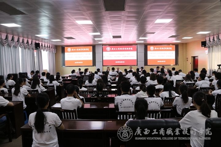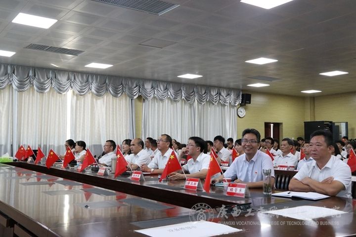 ??????? 覃武云帶領(lǐng)大家回顧了我院建校以來發(fā)展歷程,從1953年成立廣西壯族自治區(qū)糧食干部訓(xùn)練班,1957年12月-1963年冬,學(xué)校因“反右”停辦;1963年冬廣西糧食干部學(xué)?;謴?fù)辦學(xué);1969年我校與廣西財經(jīng)干部學(xué)校、廣西商業(yè)干部學(xué)校、廣西供銷干部學(xué)校4校合并為廣西財貿(mào)干部學(xué)校,1970年學(xué)校教職員工全部調(diào)離或下放;1979年9月廣西糧食學(xué)校在校生已達(dá)720人,當(dāng)年招生303人,共6個班;1989年廣西糧食學(xué)校在校師生人數(shù)902人,1993年3月,廣西糧食學(xué)校更名為廣西貿(mào)易經(jīng)濟學(xué)校,1994年被國家教育部確定為國家重點中專學(xué)校;1999年9月,廣西貿(mào)易經(jīng)濟學(xué)校在校人數(shù)2828人,招生錄取新生880人;2004年6月,在廣西經(jīng)濟貿(mào)易技工學(xué)校并入廣西貿(mào)易經(jīng)濟學(xué)校的基礎(chǔ)上升級為廣西工貿(mào)職業(yè)技術(shù)學(xué)院;2006年3月,廣西工貿(mào)職業(yè)技術(shù)學(xué)院更名為廣西工商職業(yè)技術(shù)學(xué)院;2009年8月13日我院被區(qū)教育廳和財政廳確定為“自治區(qū)示范性高等職業(yè)院校重點培育單位”;2009年9月9日我院鵬飛校區(qū)建設(shè)項目開工奠基典禮隆重舉行;2012年9月6日上午,鵬飛校區(qū)學(xué)生宿舍、教學(xué)樓、食堂通水、通電,下午4時58分學(xué)院舉行鵬飛校區(qū)大門揭牌儀式,廣西工商職業(yè)技術(shù)學(xué)院鵬飛校區(qū)正式啟動;2017年11月27日舉行“廣西工商職業(yè)技術(shù)學(xué)院武鳴新校區(qū)建設(shè)項目開工奠基儀式”;2019年學(xué)院現(xiàn)有鵬飛、中堯、新村、武鳴四個校區(qū),學(xué)校連續(xù)十一年獲廣西普通高等畢業(yè)生就業(yè)創(chuàng)業(yè)工作突出單位,學(xué)院近五年教學(xué)科研成果豐碩,獲教育部確定為第二批現(xiàn)代學(xué)徒制試點單位,獲教育部認(rèn)定高等職業(yè)教育創(chuàng)新發(fā)展行動計劃項目3項。獲廣西高職示范特色專業(yè)及實訓(xùn)基地建設(shè)項目5個,廣西職業(yè)教育專業(yè)發(fā)展研究基地1個,自治區(qū)專業(yè)教學(xué)資源庫3項。廣西社會科學(xué)優(yōu)秀成果獎1項等。教師和學(xué)生在國家級、自治區(qū)級各類比賽中屢獲佳績,科研碩果累累。