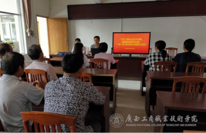 ? ? ? ? 根據(jù)《中共廣西工商職業(yè)技術(shù)學(xué)院委員會關(guān)于開展“不忘初心、牢記使命”主題教育的實(shí)施方案》文件精神和《繼續(xù)教育部黨支部“不忘初心、牢記使命”實(shí)施方案》的工作安排,10月22日,繼續(xù)教育部黨支部到陸川縣馬坡鎮(zhèn)靖西村開展“一幫一聯(lián)”結(jié)對幫扶活動暨主題黨日活動。