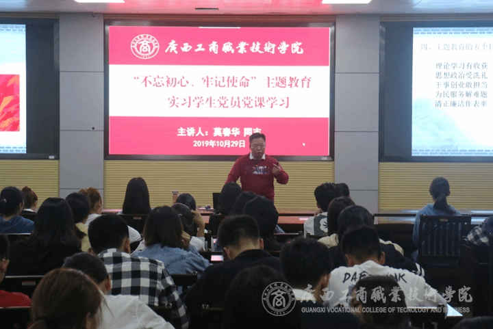 ? ? ? ? 為扎實推進(jìn)“不忘初心、牢記使命”主題教育,深化初心和使命意識,根據(jù)學(xué)院黨委學(xué)生工作部的部署,2019年10月29日晚19:00,由經(jīng)管系黨總支組織開展全院實習(xí)生黨員集中黨課學(xué)習(xí)。本次黨課由經(jīng)管系黨總支書記莫春華同志主講。各系黨總支書記、學(xué)工副主任、學(xué)生支部黨員代表、17級實習(xí)生黨員和18級入黨積極分子代表參加了黨課學(xué)習(xí)。
