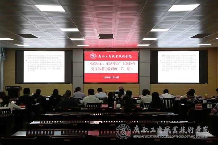 ? ? ? ? 11月12日下午,中共廣西工商職業(yè)技術(shù)學(xué)院委員會“不忘初心、牢記使命”主題教育第二期黨支部書記輪訓(xùn)班開班。本次輪訓(xùn)課由學(xué)院黨委書記覃武云主講。學(xué)院各黨總支書記、黨支部書記、學(xué)院“不忘初心、牢記使命”主題教育領(lǐng)導(dǎo)小組辦公室相關(guān)人員參加了本次輪訓(xùn)。