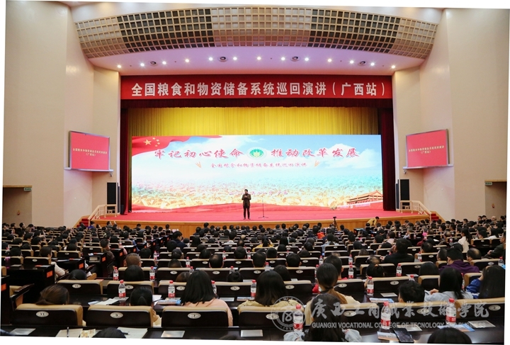 11月20日上午,全國(guó)糧食和物資儲(chǔ)備系統(tǒng)“牢記初心使命推動(dòng)改革發(fā)展”巡回演講活動(dòng)廣西站在廣西壯族自治區(qū)人民會(huì)堂舉行。自治區(qū)直屬機(jī)關(guān)工委、自治區(qū)糧食和物資儲(chǔ)備局、國(guó)家糧食和物資儲(chǔ)備局廣西局及各設(shè)區(qū)市局的部分領(lǐng)導(dǎo)同志、廣西糧食和物資儲(chǔ)備系統(tǒng)干部職工參加活動(dòng),我院黨委書記覃武云出席率我院300余名師生代表到場(chǎng)聆聽(tīng)演講。