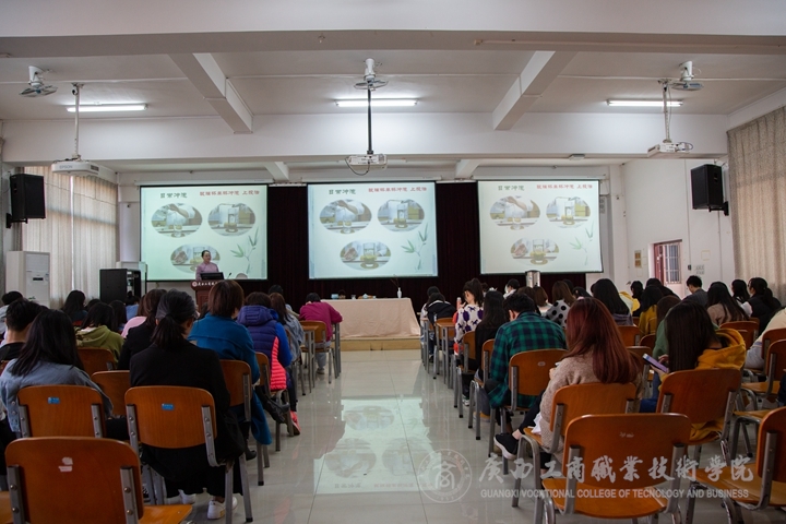 根據(jù)我院本學(xué)期的學(xué)術(shù)活動(dòng)日安排,由公共部主承辦、經(jīng)管系協(xié)辦、主題為《中華茶藝》的學(xué)術(shù)講座,于2019年12月13日下午在學(xué)院報(bào)告廳舉行。南寧市芳君默工作室創(chuàng)辦人、高級(jí)茶藝技師、高級(jí)評(píng)茶師劉芳老師應(yīng)邀到校講座。公共基礎(chǔ)部教師和經(jīng)管系學(xué)生約220人聆聽(tīng)了講座。