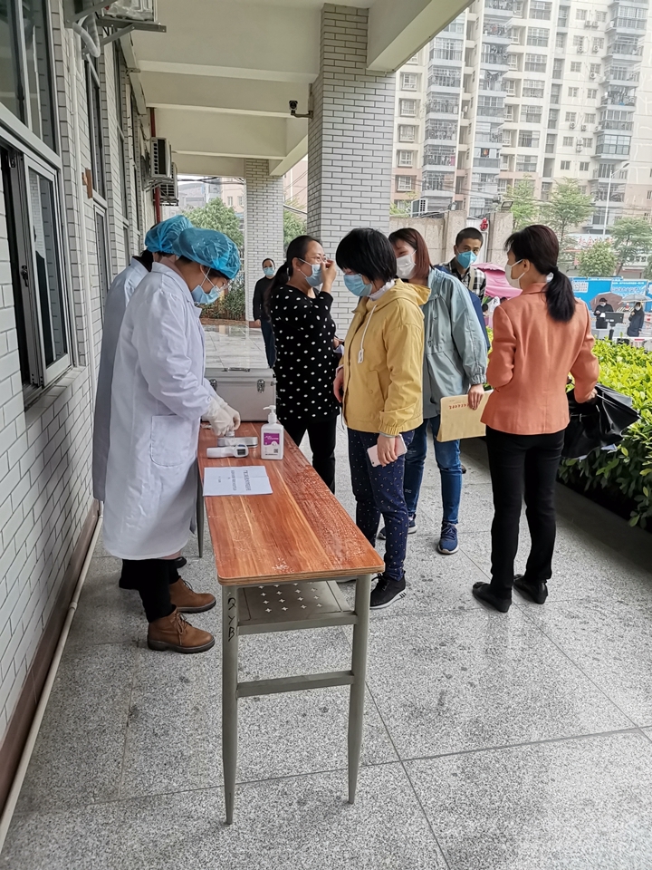 五是做好教職工防控工作。教職工防控小組建立工作體系,下設(shè)20個部門防控小組,其中部門領(lǐng)導1人、APP管理員1人、資產(chǎn)管理員1人,具體負責部門防控工作。制定教職工健康管理制度,實行“日報告”、“零報告”制度。通過教職工個人每日完成今日校園APP工作任務(wù),部門負責信息匯總上報的方式,每日掌握教職工(包括在職教職工、離退休教職工、外聘教師、外包服務(wù)人員)健康狀態(tài)。按規(guī)定落實教職工居家觀察要求,居家隔離14天后方可返校。提醒教職工做好返程期間個人防護措施,做好教職工的健康管理。制定工作方案,組織教職工學習疫情防控制度、個人防護與消毒等知識,建立健康排查機制,建立健康管理機制,建立應急處置機制,做好疫情防控的相關(guān)預案。嚴格校園出入管理,教職員工進入校門一律核驗身份和檢測體溫。制定演練方案,3月17 日上午9 :30,組織各部門人員開展開學日教職工返校實地演練,并對發(fā)現(xiàn)的問題作進一步的完善。