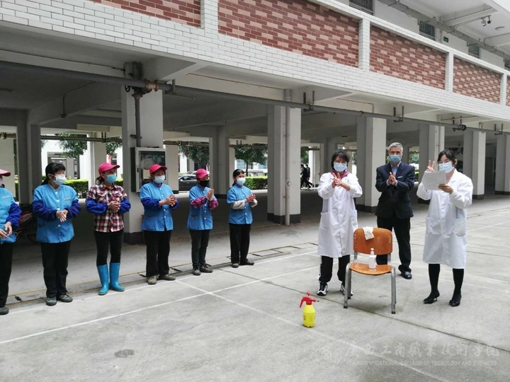 二是全力以赴,繼續(xù)做好學生返校后的各項準備。后勤管理處等部門嚴格落實上級疫情防控指揮部有關(guān)文件要求,精心做好開學準備工作。建立健全并嚴格執(zhí)行學校疫情防控和開學準備各項制度,制定了材料《廣西工商職業(yè)技術(shù)學院2020年春季學期開學校園環(huán)境(消毒)工作方案》《廣西工商職業(yè)技術(shù)學院2020年春季學期開學伙食供應的保障制度》《疫情期間人員、車輛出入管控方案》《廣西工商職業(yè)技術(shù)學院突發(fā)公共衛(wèi)生事件應急預案》《醫(yī)務(wù)所新型冠狀病毒肺炎防控應急預案》《廣西工商職業(yè)技術(shù)學院傳染病隔離制度》《廣西工商職業(yè)技術(shù)學院傳染病防控健康教育工作方案》《傳染病疫情及突發(fā)公共衛(wèi)生事件報告流程圖》《突發(fā)公共衛(wèi)生事件應急工作流程圖》,并積極參與物資籌備,做好隔離觀察室啟用后內(nèi)部需要的防護用品,做好學生返校后食堂錯峰就餐、出現(xiàn)發(fā)熱人員的應急處置等防控工作演練,保障學生返校后安全。于此同時,繼續(xù)狠抓落實多個校區(qū)的進出人員及車輛的體溫檢測和保安工作,及公共區(qū)域和電梯等重點區(qū)域的消毒工作,加強校園衛(wèi)生死角管理,派出醫(yī)務(wù)所醫(yī)生做好有關(guān)工作人員的消毒及個人防護的培訓工作。