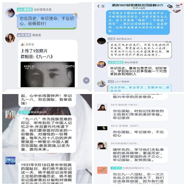各班級組織觀看了央視頻道播放的《“九一八”真相》記錄片,隨后在班級群里展開討論。隨著紀(jì)錄片的播放,同學(xué)們一起回顧那段坎坷歲月,感受我們中華民族在當(dāng)時所經(jīng)歷的艱難。在討論的過程中,同學(xué)們精神振奮,情緒激昂,在共同緬懷遇難同胞,表達(dá)對先烈崇高的敬意和深深的悼念之情的同時,不忘相互激勵。