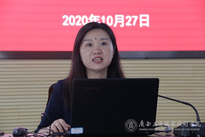 最后,我院管理學(xué)院院長高潔對《廣西職業(yè)教育工商企業(yè)管理專業(yè)及專業(yè)群研究基地工作匯報》做了簡要介紹,主要包括兩方面內(nèi)容:一是研究基地建設(shè)及落實。包括基地建設(shè)情況、建設(shè)目標(biāo)、建設(shè)落實情況。二是研究基地成果及展示。