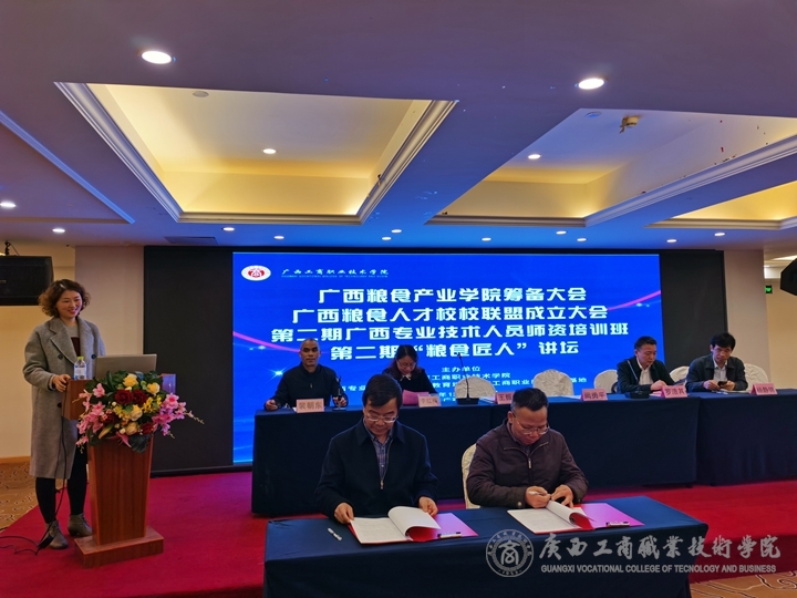 為深入貫徹習(xí)近平總書記關(guān)于教育的重要論述和全國(guó)教育大會(huì)精神,扎實(shí)推進(jìn)《國(guó)家職業(yè)教育改革實(shí)施方案》(職教二十條)的落實(shí),促進(jìn)《廣西壯族自治區(qū)關(guān)于推進(jìn)高等職業(yè)學(xué)校產(chǎn)業(yè)學(xué)院建設(shè)的指導(dǎo)意見》落地,增強(qiáng)兄弟院校的交流合作,實(shí)現(xiàn)資源共享融合、合作共贏,順利完成雙高建設(shè)任務(wù),由廣西工商職業(yè)技術(shù)學(xué)院主辦,廣西工商職業(yè)技術(shù)學(xué)院繼續(xù)教育學(xué)院承辦“廣西糧食產(chǎn)業(yè)學(xué)院成立籌備大會(huì)、廣西涉糧人才校校聯(lián)盟成立大會(huì)、第二期廣西專業(yè)技術(shù)人員培訓(xùn)師資班、第二期‘糧食匠人’講壇”等系列活動(dòng)于2020年12月10日在南寧維也納酒店圓滿結(jié)束。