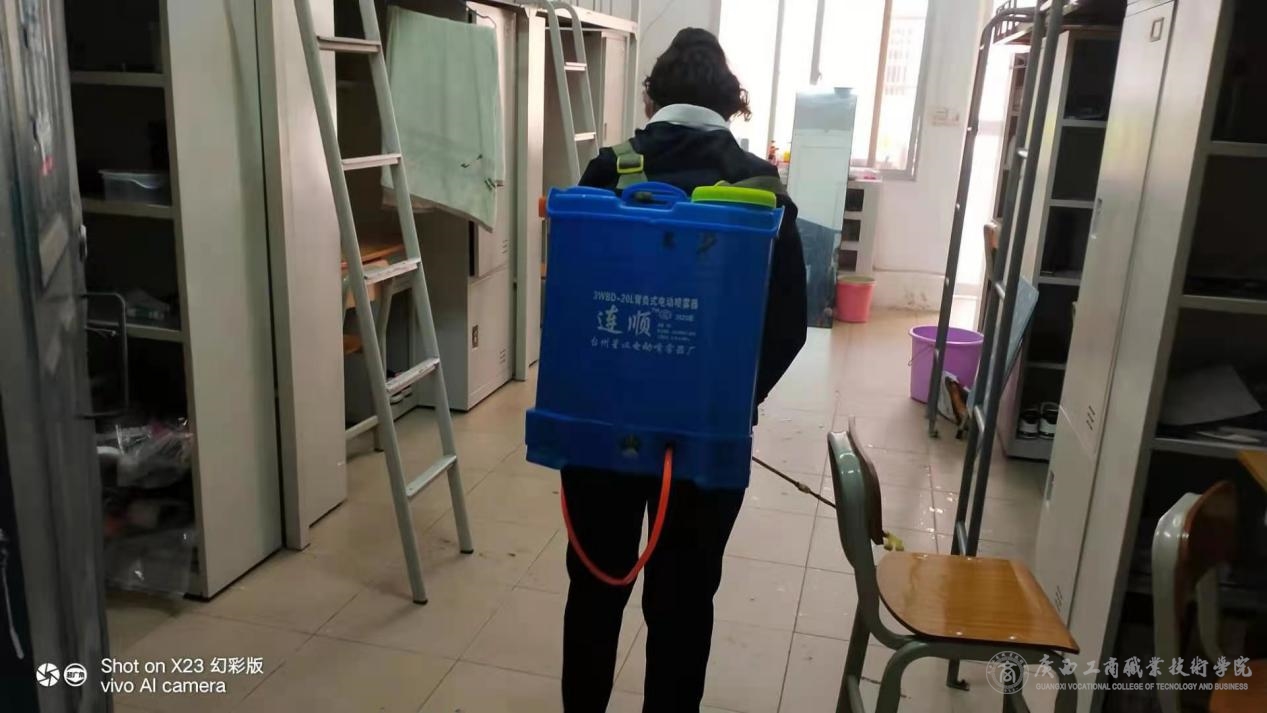 為確保疫情防控常態(tài)化形勢下,學(xué)生返校后宿舍環(huán)境干凈、整潔、舒適, 2月底3月初,學(xué)院宿舍管理員在黨委學(xué)生工作部宿管科工作人員的帶領(lǐng)下,全體出動對鵬飛、中堯、武鳴三個校區(qū)共12棟學(xué)生宿舍樓進(jìn)行全面的清掃和消毒。