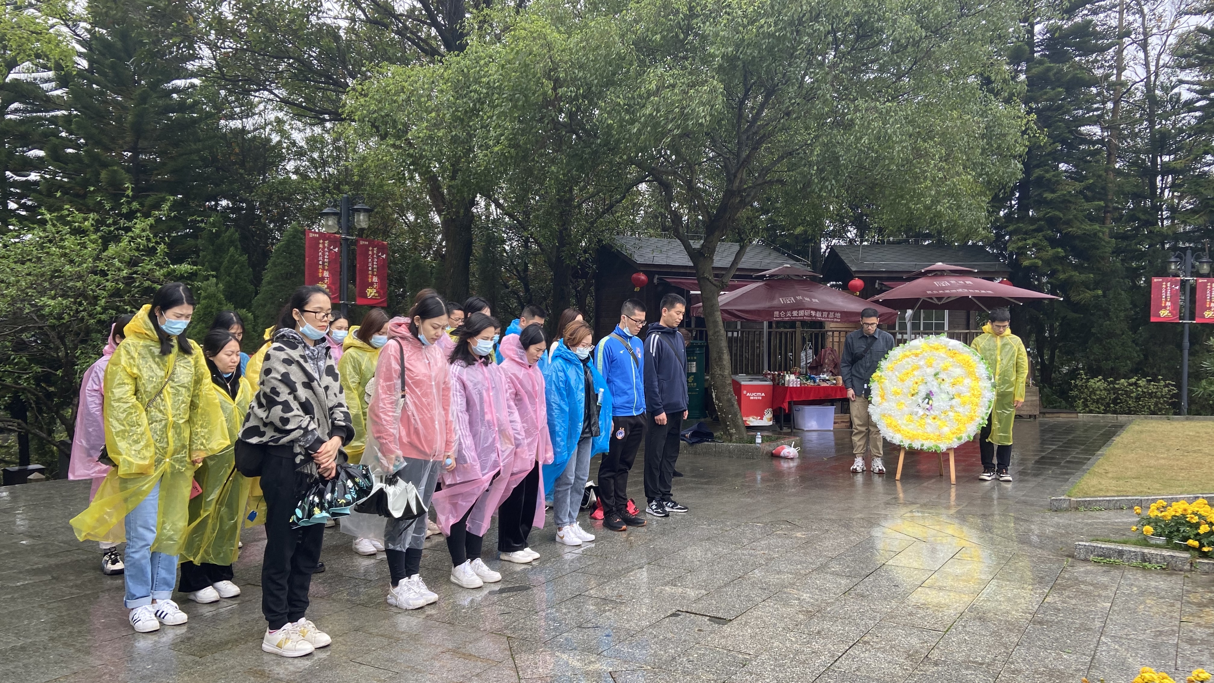 3月11日上午,一行人冒雨到達昆侖關(guān)紀念塔,聆聽了講解員關(guān)于昆侖關(guān)戰(zhàn)役的過程、意義以及紀念塔的由來、碑文的內(nèi)容。輔導(dǎo)員們被昆侖關(guān)戰(zhàn)役的精神所深深的打動,冒雨在塔前舉行了祭奠儀式,向抗日烈士鞠躬、默哀、敬獻花圈。