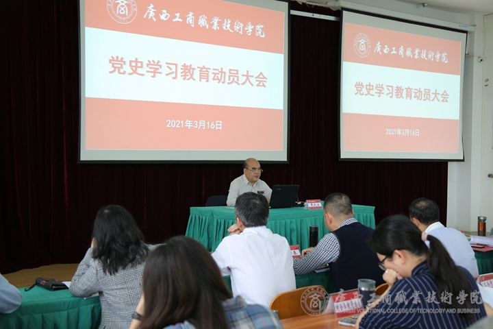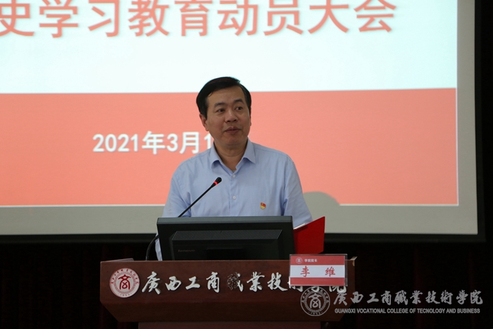 覃武云書記強(qiáng)調(diào),要緊扣中央精神和自治區(qū)部署,結(jié)合學(xué)院實際,推動黨史學(xué)習(xí)教育高質(zhì)量開展。一是準(zhǔn)確把握中央和自治區(qū)的部署,精心組織學(xué)院“自選動作”。在貫徹落實中央“規(guī)定動作”和自治區(qū)“自選動作”的基礎(chǔ)上,學(xué)院精心組織“黨史上的今天”思政課程和課程思政系列活動、“喜迎建黨百年”畢業(yè)文化周系列活動等“自選動作”。二是要深入開展黨史學(xué)習(xí)教育,扎實學(xué)好黨史這門課。領(lǐng)導(dǎo)干部要堅持以上率下,在學(xué)黨史、講黨史、懂黨史、用黨史方面發(fā)揮示范帶動作用?;鶎狱h組織要采取“三會一課”和主題黨日,各班級要采取主題班會和主題團(tuán)日等形式,結(jié)合實際開展主題突出、特色鮮明、形式多樣的學(xué)習(xí)活動。三是要深化思想理論武裝,感悟思想偉力。要突出學(xué)習(xí)習(xí)近平總書記關(guān)于教育的重要論述以及對廣西工作重要指示精神等重要內(nèi)容,從中汲取前行力量。四是牢記初心使命,切實為民辦實事。要在武鳴新校區(qū)建設(shè)、全面提升教育質(zhì)量、中堯校區(qū)及新村校區(qū)危舊房改造項目、學(xué)生就業(yè)與服務(wù)、教職工身心健康、退休職工待遇等民生工程下功夫見實效,不斷增強(qiáng)師生員工的獲得感、幸福感、安全感。五是提高風(fēng)險應(yīng)對能力,順利實施學(xué)院“十四五”規(guī)劃。開展黨史學(xué)習(xí)教育過程中聯(lián)系實際學(xué)、帶著問題學(xué)、結(jié)合工作學(xué)扎實做好各項工作,為學(xué)院實施“十四五”規(guī)劃開好局、起好步。