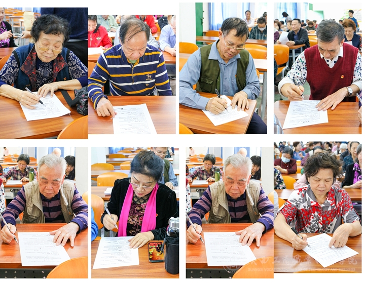 活動(dòng)中,學(xué)院離退休老同志合唱紅歌《社會(huì)主義好》、《歌唱祖國(guó)》,歌聲嘹亮唱響了離退休老同志心中的激蕩,唱響了愛黨愛國(guó)的主旋律;接著,學(xué)院黨員離退休老同志重溫入黨誓詞,再次接受了心靈的洗禮,銘記莊嚴(yán)的承諾,牢記共產(chǎn)黨員的政治使命和光榮職責(zé)。在“黨史知識(shí)大家答”環(huán)節(jié),全體黨員認(rèn)真、嚴(yán)肅交上100分的答卷?;顒?dòng)最后,離退休老同志通過在操場(chǎng)健步走,展現(xiàn)我院老黨員的精神面貌。老同志們表示今天的黨史學(xué)習(xí)教育意義重大,自己將認(rèn)真參加學(xué)院黨史學(xué)習(xí)教育,爭(zhēng)取以學(xué)促用發(fā)揮余熱。