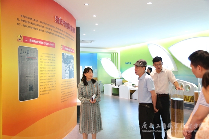 指導(dǎo)組參觀學(xué)院糧食文化展廳