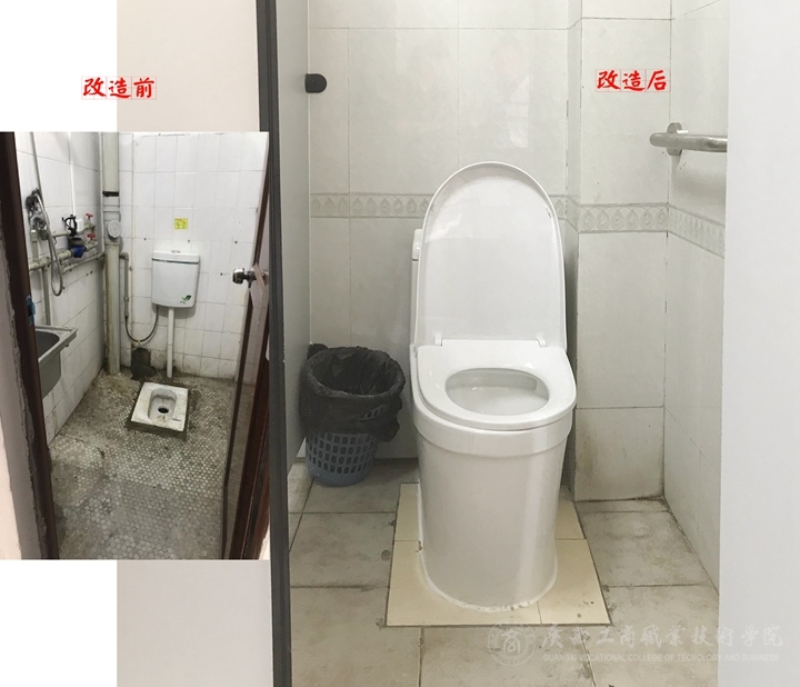 (圖為中堯校區(qū)離退休黨員活動室衛(wèi)生間改造前后對比)