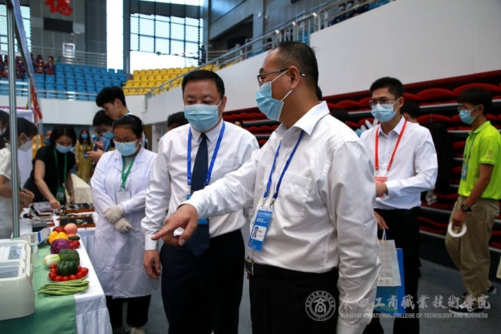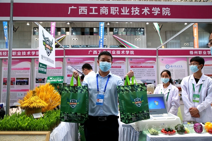 本屆展會,我院的展位設(shè)計以“糧·商”特色為主,學(xué)院總體發(fā)展定位為“糧·商"同步推進,以建設(shè)高水平糧油食品專業(yè)群為龍頭,帶動新工科、新商科專業(yè)集群體系建設(shè),積極探索構(gòu)建“多元參與、校企雙主體"的產(chǎn)教融合模式。展位上,糧油食品專業(yè)的老師帶領(lǐng)學(xué)生為嘉賓展示糧食農(nóng)藥殘毒監(jiān)測技術(shù)并講解,這是糧食副產(chǎn)物精深加工的科研成果;南寧市軍糧供應(yīng)站像嘉賓展示了校企合作研發(fā)的產(chǎn)品。學(xué)院黨委副書記蒙啟成帶領(lǐng)參展嘉賓來到我院展區(qū)查看現(xiàn)場,為現(xiàn)場各領(lǐng)導(dǎo),嘉賓等一一介紹了我院的產(chǎn)品。師生的作品受到了上級領(lǐng)導(dǎo)及各國嘉賓的高度認可。