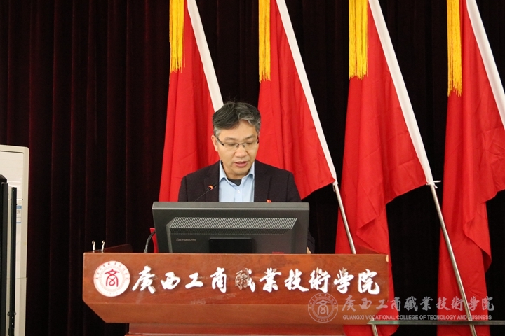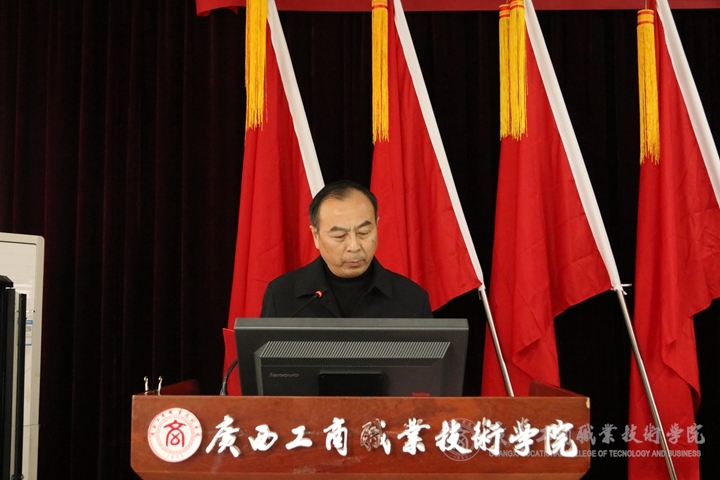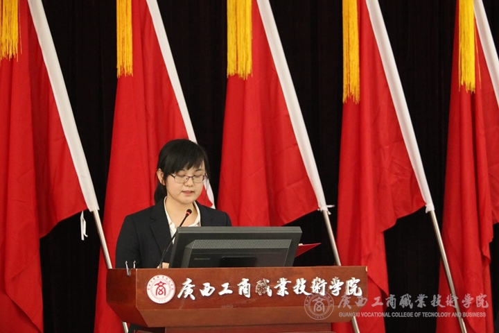 學(xué)院團委書記王娟同志代表共青團廣西工商職業(yè)技術(shù)學(xué)院第二屆委員會向大會作《青春心向黨奮斗為強國團結(jié)帶領(lǐng)廣商院青年在新征程中擔(dān)當(dāng)作為》的工作報告。?
