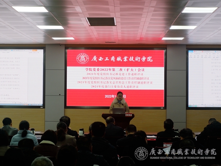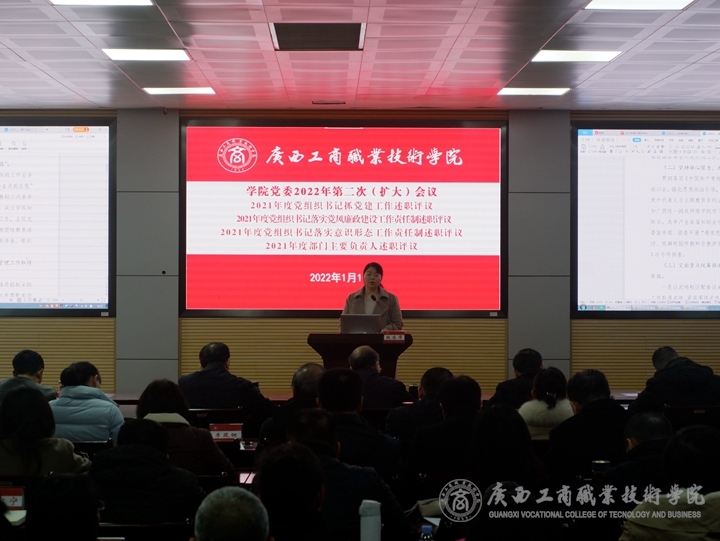 1月11日上午,學院在鵬飛校區(qū)2119會議室召開2021年度學院基層黨組織書記抓黨建工作述職評議考核暨學院部門和中層管理人員年度述職評議會議。學院領導、學院中層管理人員、教代會代表,各黨總支、直屬黨支部書記、委員、組織員參加會議。會議由學院黨委書記覃武云主持。