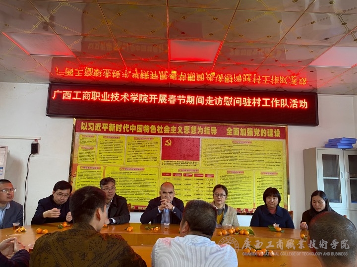 在八角、良村、那若、水亭,學(xué)院黨委書記覃武云與駐村第一書記、工作隊員和村“兩委”班子成員進(jìn)行座談,詳細(xì)了解駐村第一書記和工作隊員駐村以來的工作生活情況,詢問他們工作中遇到的困難、問題及下一步工作計劃。并叮囑第一書記和工作隊員2022年實施“十四五”規(guī)劃承上啟下的關(guān)鍵之年,更要切實增強(qiáng)做好鄉(xiāng)村振興幫扶工作的責(zé)任感和使命感,扎實助力鄉(xiāng)村振興工作。座談會后,學(xué)院黨委書記慰問駐村第一書記、工作隊員和村干部,并送上慰問金和新年祝福。