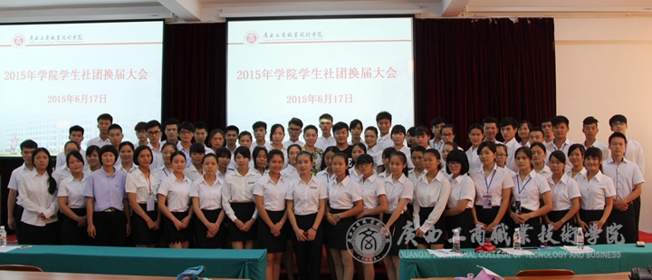 2015年6月17日,我院2015年學(xué)生社團(tuán)換屆大會于校本部教學(xué)樓2214報(bào)告廳隆重舉行,學(xué)院25個社團(tuán)集體換屆儀式將在此次大會上舉行。學(xué)院團(tuán)委副書記陳宇寧老師、學(xué)院團(tuán)委陶曉斌老師、經(jīng)管系方亮老師,學(xué)院學(xué)生社團(tuán)聯(lián)合會全體成員以及學(xué)院25個社團(tuán)主要干部出席了本次大會。