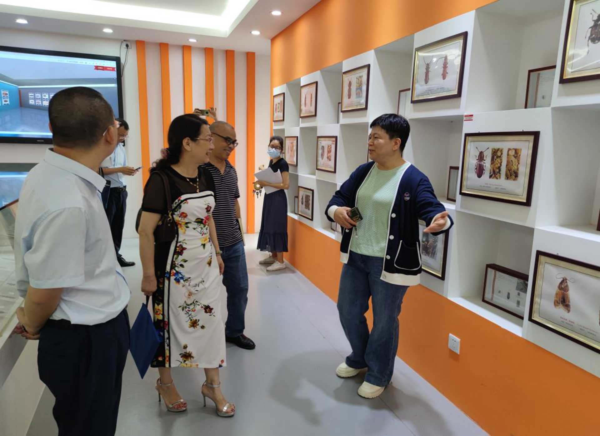 (專家組查看糧蟲標本室)