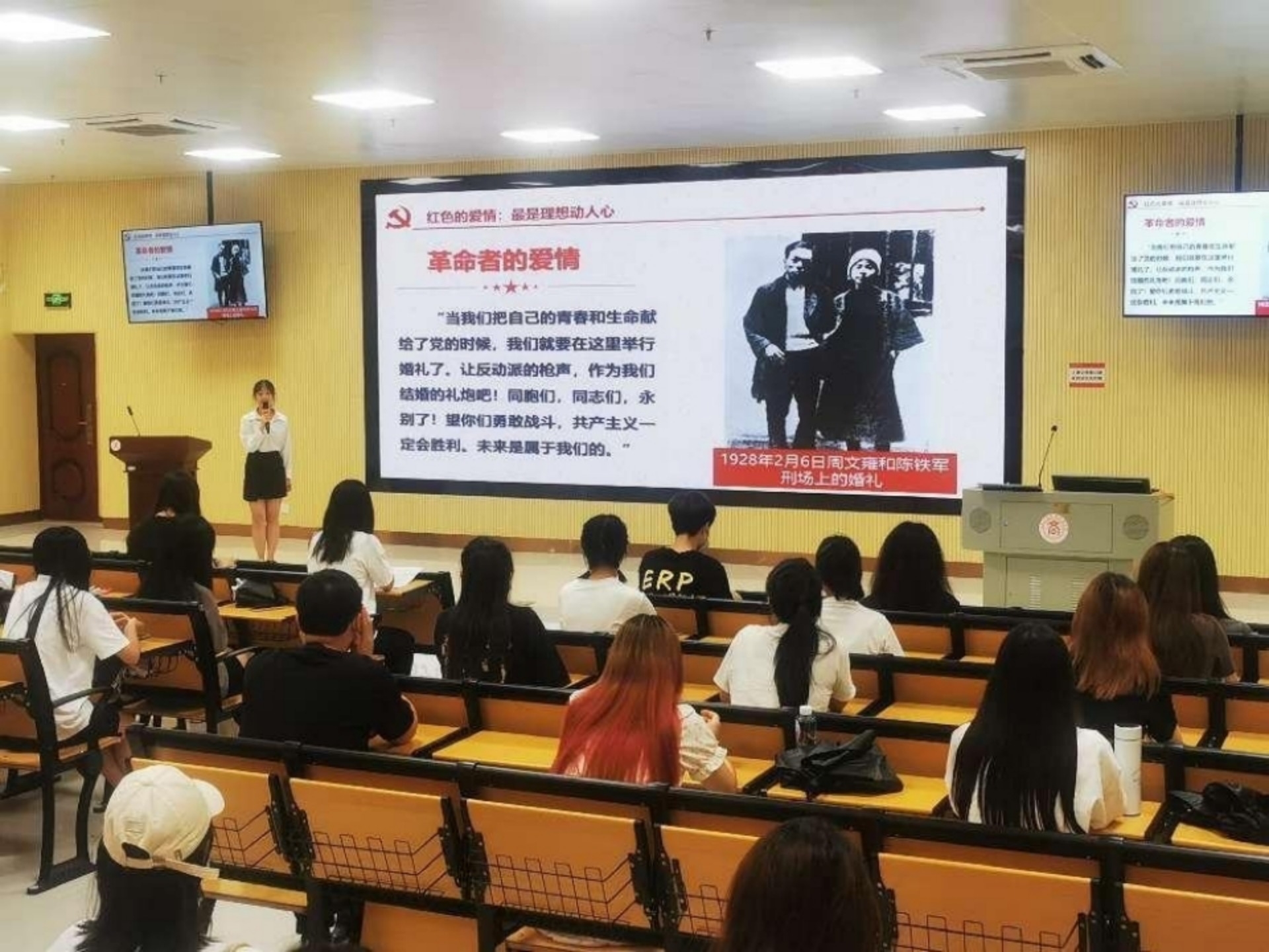 宣講團(tuán)秦玉玲、高愛欣、韋雙雙三位同學(xué)分別進(jìn)行了題為《把一切獻(xiàn)給黨》《紅色的愛情:最是理想動人心》《弘揚(yáng)紅船精神》的主題宣講。他們以平實(shí)的語言、真摯的感情,帶領(lǐng)現(xiàn)場的同學(xué)們回顧中國共產(chǎn)黨百年崢嶸歲月和光輝歷史,一個(gè)個(gè)鼓舞人心的紅色故事激勵著在場的所有同學(xué),引發(fā)強(qiáng)烈共鳴。