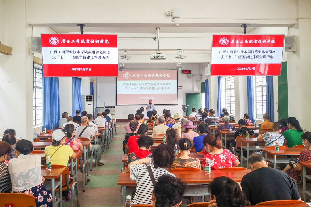 6月27日,學(xué)院在中堯校區(qū)組織離退休老同志開展慶“七一”系列活動,黨史知識大家答、學(xué)院紀(jì)委書記韋云鳳給離退休老同志上“清廉學(xué)校建設(shè)”主題黨課、退休老黨員開展“我為黨的二十大建言獻(xiàn)策”座談會,學(xué)院離退休老同志近110人參加活動。學(xué)院黨委書記覃武云、院長李維等領(lǐng)導(dǎo)同志出席活動,并致以節(jié)日的問候。學(xué)院黨委辦公室、黨委組織部有關(guān)同志參加活動。