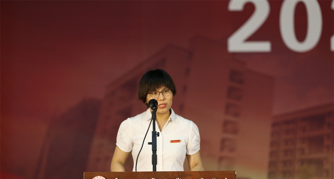 我院2021年度優(yōu)秀教師、學院思政課鑄魂育人團隊負責人,廣西高校思想政治教育杰出人才第一批支持對象趙婷老師代表全體教師發(fā)言。她希望同學們:“以夢為馬,莫負韶華,帶著知識和激情,將個人的發(fā)展與時代的進步融合在一起,投入到全面建設社會主義現(xiàn)代化強國當中去,投入到建設新時代中國特色社會主義壯美廣西當中去,在最富有創(chuàng)造力的青春年華,發(fā)出時代最強音!”
