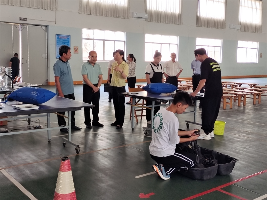 (覃武云觀看學(xué)生技能演練)