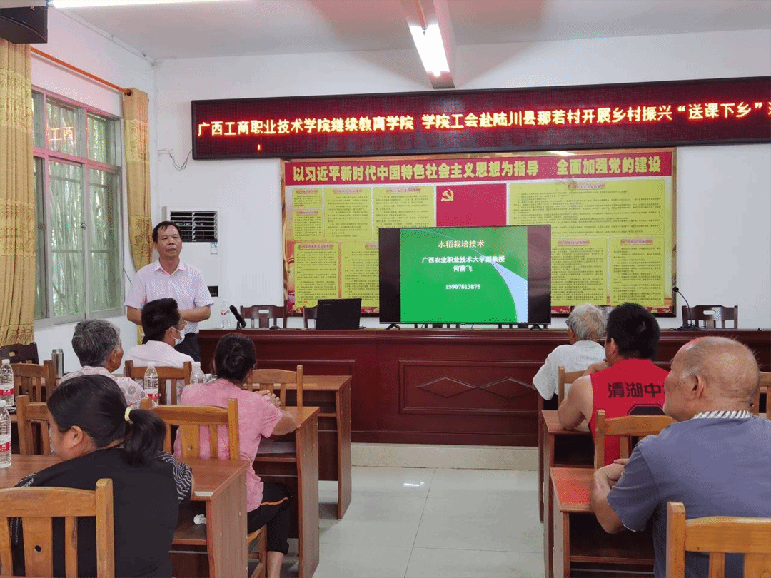 2022年7月28日-29日,繼續(xù)教育學(xué)院院長李朝鋒及學(xué)院工會(huì)負(fù)責(zé)人,一行14人赴廣西陸川縣水亭村、那若村,為當(dāng)?shù)剞r(nóng)民送上《家禽養(yǎng)殖新技術(shù)》和《水稻種植新技術(shù)》的課程。何蔭飛和張國良兩位老師用深入淺出、生動(dòng)幽默的語言講解了養(yǎng)殖、種植的最新技術(shù),290余人次參加了此次培訓(xùn)活動(dòng)。培訓(xùn)課堂上,村民們態(tài)度認(rèn)真、氣氛活躍,對于日常遇到的技術(shù)難題,向兩位老師積極請教,兩位老師均耐心細(xì)致地給予解答。培訓(xùn)之外,參加培訓(xùn)人員與村干部和部分村民進(jìn)行了親切交流,了解農(nóng)村對技術(shù)、人才、資源等需求情況,為下次活動(dòng)收集調(diào)研信息。