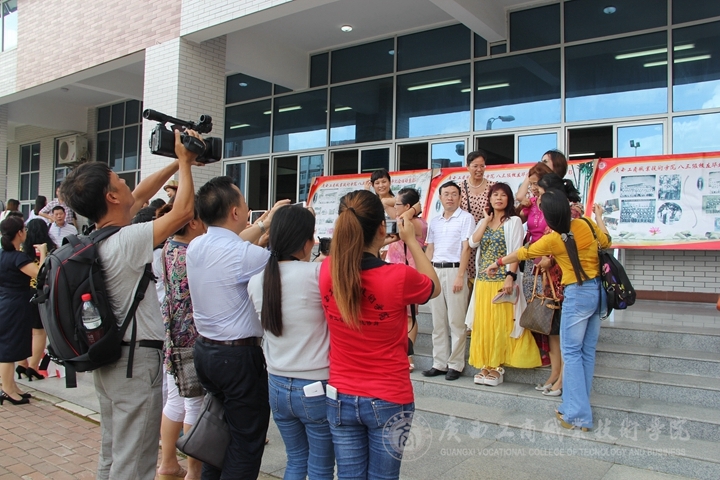 6月27日,這天,烈日炎炎,但依然擋不住學生和來賓發(fā)自內(nèi)心的熱情情緒,教學樓架空層人潮涌動,“人民網(wǎng)”、“央廣網(wǎng)”、“中新網(wǎng)”、“中國青年網(wǎng)”、“南寧電視臺新聞夜班”、“廣西電視臺私家車930”、“南寧電臺FM1074”、“南寧晚報”等區(qū)內(nèi)外有影響力的媒體平臺入校對我院“雙選會”進行相關(guān)新聞的報道。媒體記者來到活動現(xiàn)場進行拍攝、采訪等相關(guān)播報。在教學樓架空層的雙選會現(xiàn)場,攝影攝像記者拍攝了現(xiàn)場熱鬧的招聘會面試過程,學生積極應聘,投簡歷,企業(yè)代表與學生侃侃而談,招聘他們心儀的人才。同時,記者也對畢業(yè)生進行簡短的采訪,學生們舉止落落大方地接受采訪并回答記者的提問。不遠處的學生公寓樓架空層處學生的展演現(xiàn)場,攝像人員對新穎的各種畢業(yè)設(shè)計作品展、可口的美食、專業(yè)技能的展示進行拍攝并向外界播報,引發(fā)社會對我院的關(guān)注和了解。