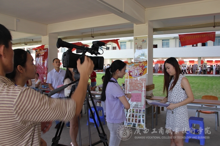 2015年6月27日,廣商院2015年畢業(yè)生供需見面洽談會暨頂崗實習企業(yè)推介會(簡稱“雙選會”)在校本部教學樓架空層舉行,我院以職教成果展演方式引動近200企業(yè)入校招聘,“一邊看展演一邊選人才”的“嘉年華式”雙選會廣受好評。同樣,這樣的雙選會模式也成為了一個新聞點,吸引了“人民網(wǎng)”、“央廣網(wǎng)”、“中國青年網(wǎng)”、“中新網(wǎng)”“南寧電視臺新聞夜班”、“廣西電視臺私家車930”、“南寧電臺FM1074”、“南寧晚報”等區(qū)內(nèi)外有影響力的媒體平臺入校對我院“雙選會”進行相關(guān)新聞的報道。同時,校內(nèi)黨委宣傳部新聞中心以及各系部學生記者團隊也對雙選會進行跟蹤報道,向校內(nèi)外提供適時新聞。