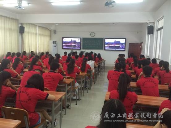 今天,是中國人民抗日戰(zhàn)爭暨世界反法西斯戰(zhàn)爭勝利70周年紀念日。這是正義戰(zhàn)勝邪惡、光明戰(zhàn)勝黑暗、進步戰(zhàn)勝反動的偉大勝利,是中國人民和全世界一切愛好和平的國家和人民的盛大節(jié)日。為了紀念和慶祝這一偉大節(jié)日,9月3日早上10時,由我院學生委員會組織,學院老師、院級學生組織代表、各系學生會主要干部參與,在2207教室觀看“紀念中國人民抗日戰(zhàn)爭暨世界反法西斯戰(zhàn)爭勝利70周年”閱兵儀式。