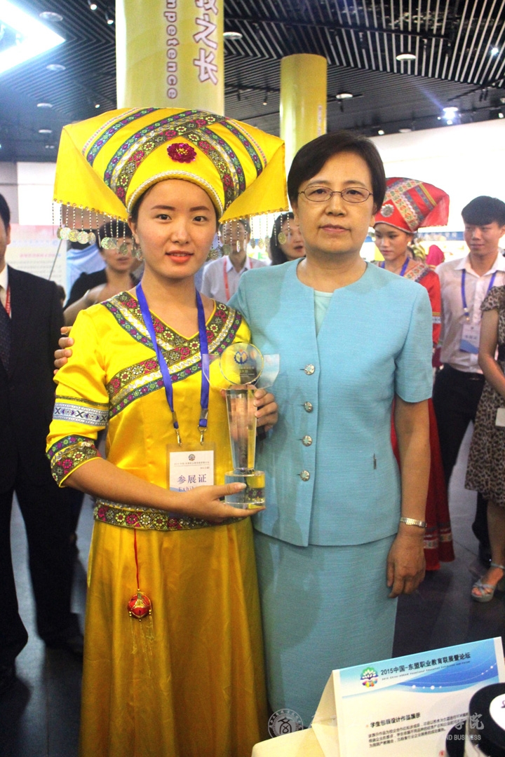 教育部魯昕副部長(zhǎng)與我院學(xué)生陳鋪娟合影