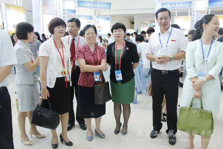 成果展期間,學(xué)院領(lǐng)導(dǎo)李維副院長(zhǎng)和教務(wù)科研處韋勝?gòu)?qiáng)處長(zhǎng)以及我院參展的指導(dǎo)老師認(rèn)真參觀了各參展學(xué)校的成果展示,與參加職業(yè)教育展的多所學(xué)校就職業(yè)教育的發(fā)展進(jìn)行多方面交流。李副院長(zhǎng)表示,其他學(xué)校的展示也要去參觀學(xué)習(xí),學(xué)習(xí)借鑒別人成功經(jīng)驗(yàn),進(jìn)一步提高自身水平。