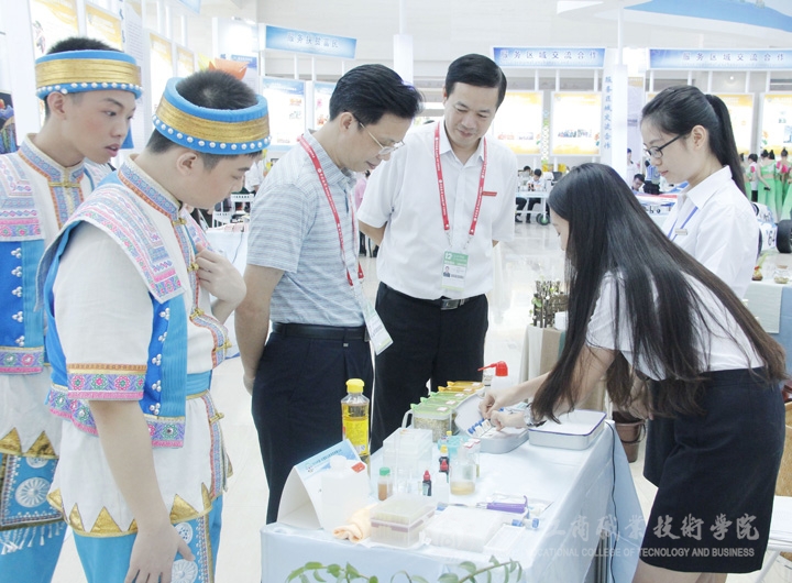 9月19日,自治區(qū)教育廳廳長(zhǎng)秦斌觀看聯(lián)展。下午4點(diǎn)時(shí),2015中國(guó)—東盟職業(yè)教育聯(lián)展暨論壇在廣西美術(shù)館宣告落幕,我院順利完成2015年中國(guó)-東盟職業(yè)教育展展示。