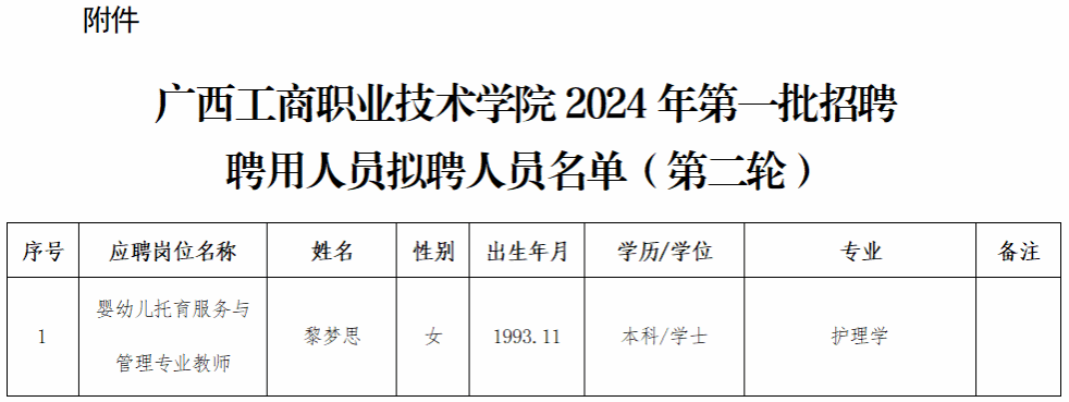 附件:廣西工商職業(yè)技術(shù)學(xué)院2024年第一批招聘聘用人員擬聘人員名單(第二輪)