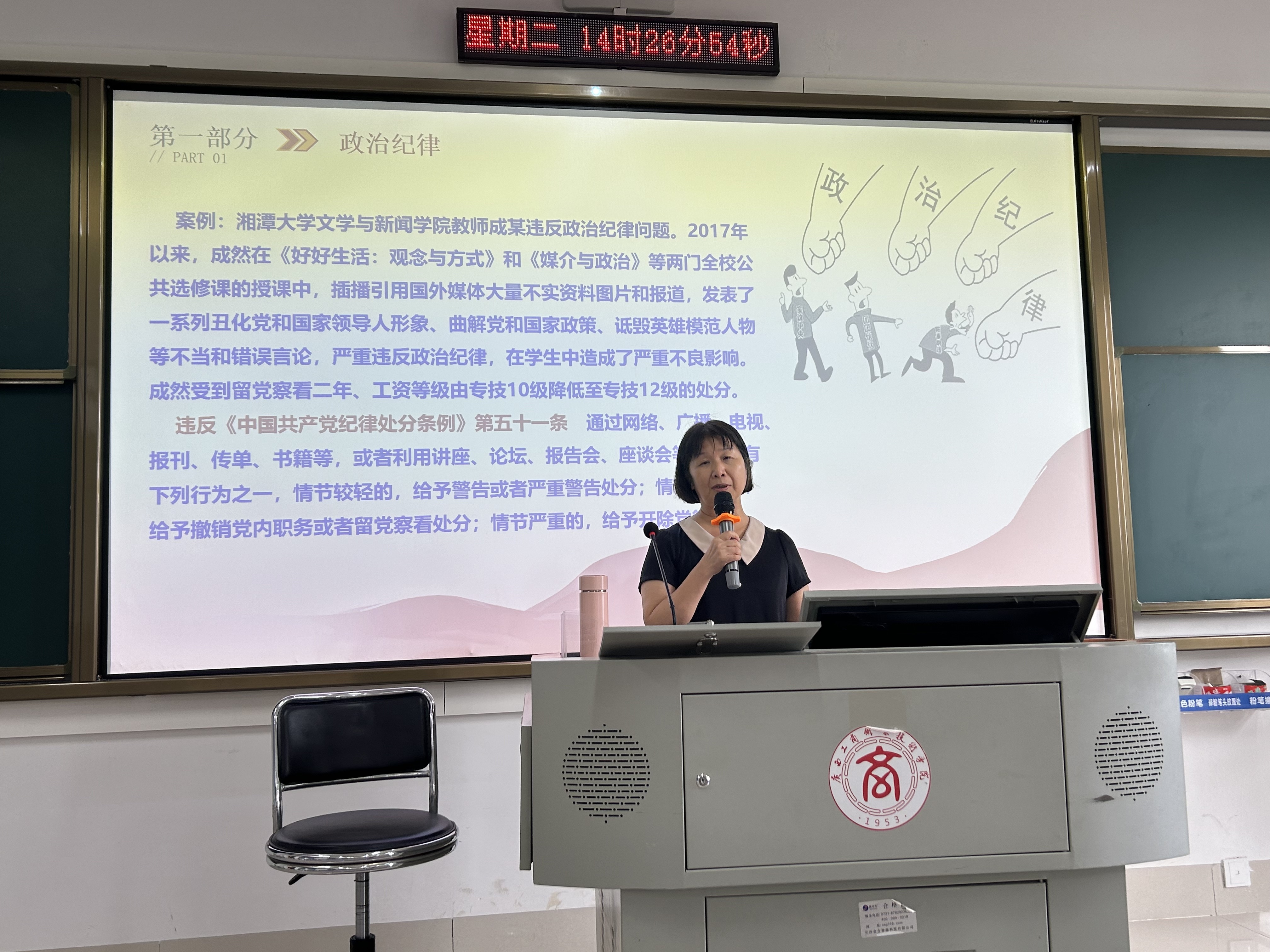 圖一:粟衛(wèi)紅上紀律黨課