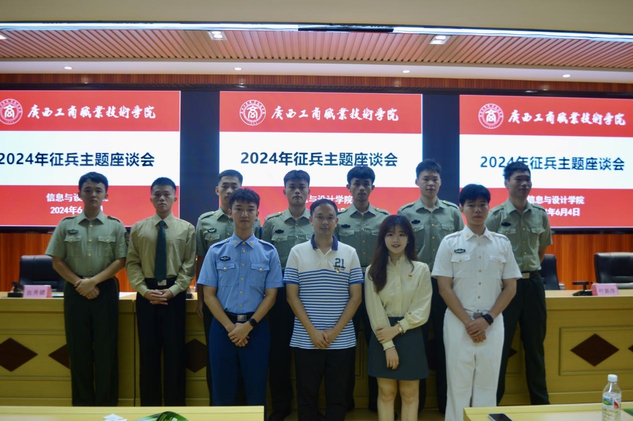 實現(xiàn)中華民族偉大復(fù)興的強國夢,是每一個中華兒女的共同心愿,也是炎黃子孫的不懈追求。為響應(yīng)國家征兵號召,激發(fā)我院學(xué)生參軍入伍熱情,6月4日下午,2024年征兵主題座談會在鵬飛校區(qū)2145會議室舉行。信息與設(shè)計學(xué)院學(xué)生黨支部書記唐劍、團委副書記韋斯娜、負責(zé)征兵工作老師黃慧金及專職輔導(dǎo)員們參加本次座談會。? ??
