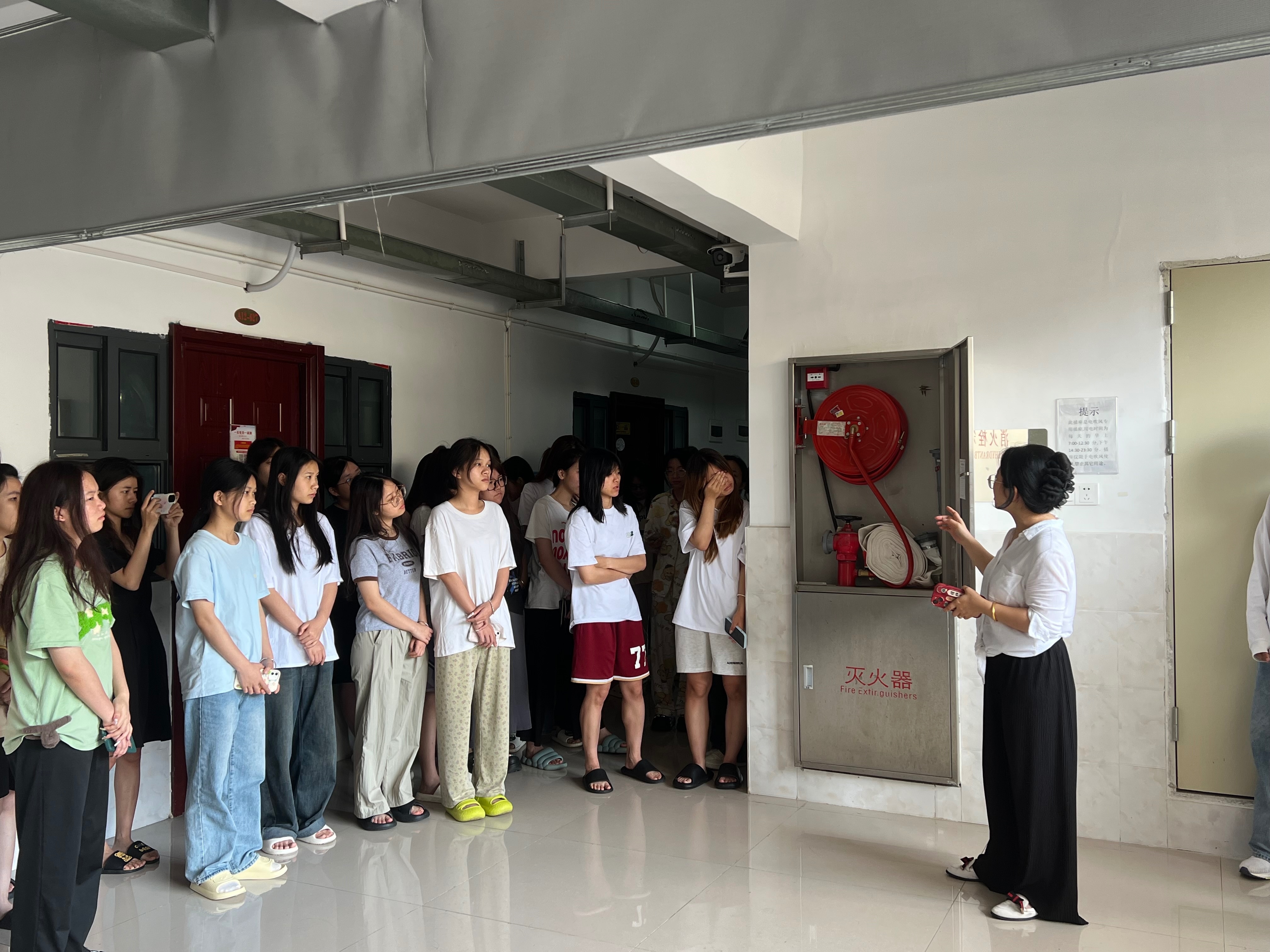 圖為:宿舍樓內(nèi)輔導(dǎo)員和學(xué)生在進(jìn)行消防知識(shí)互動(dòng)問答