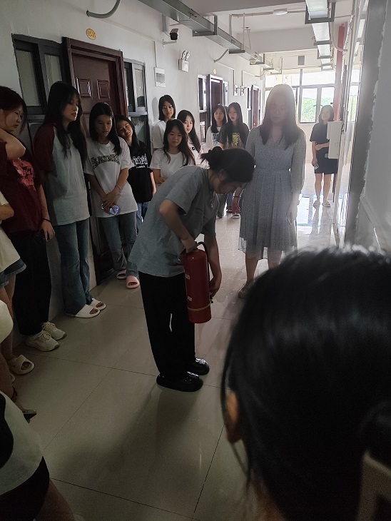 在本次演練中,輔導員先是帶領(lǐng)同學們熟悉樓層構(gòu)造,了解樓層消防設(shè)施,并向同學們演示當發(fā)生火災(zāi)時如何正確使用滅火器和安全逃生,讓同學們親身感受演練?;馂?zāi)逃生要走安全出口,逃生不得擁擠吵鬧,應(yīng)該保持冷靜,用濕毛巾或者其他東西打濕捂住口鼻匍匐前進,因為煙氣較空氣輕而飄于上部,貼近地面逃生是避免煙氣吸入的最佳方法。