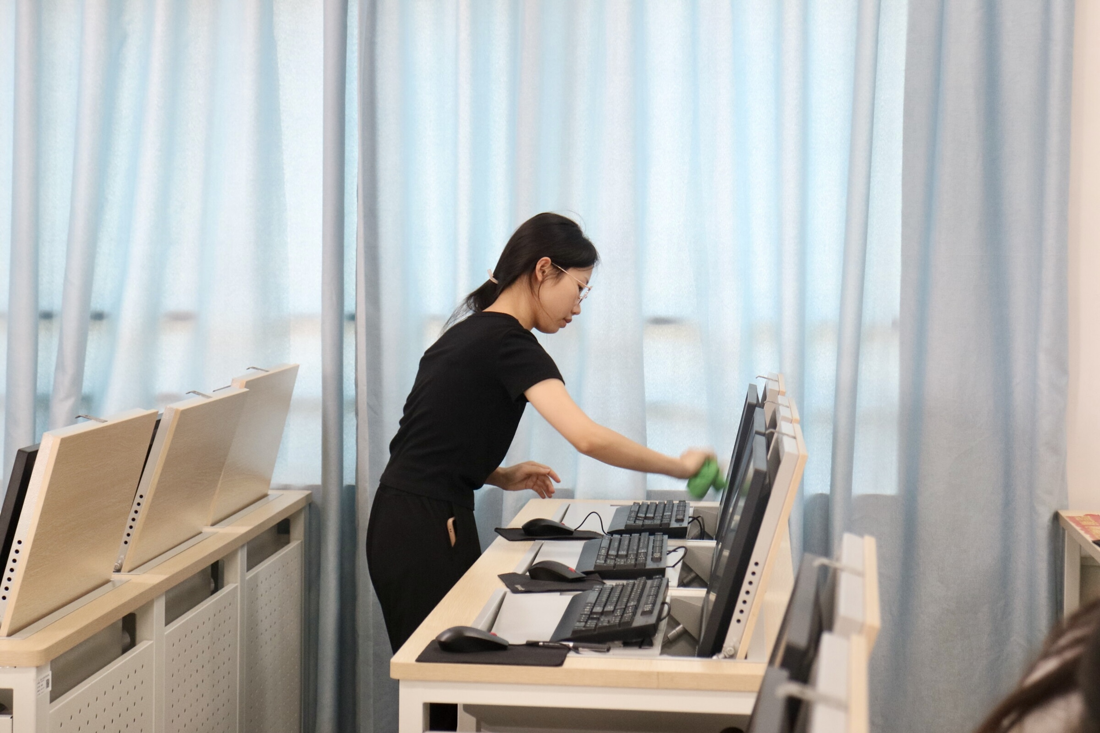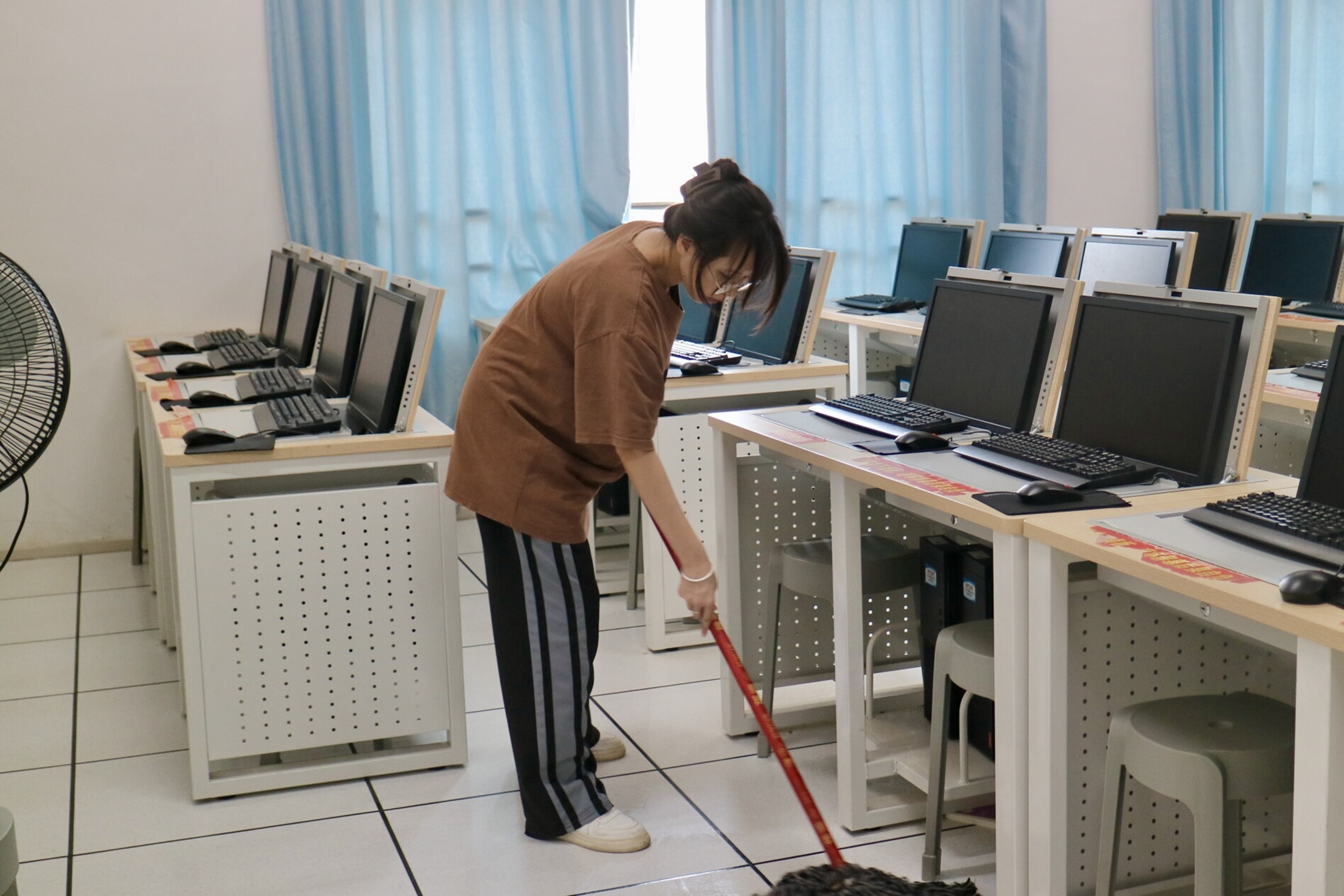 活動當(dāng)天,志愿者們在A3架空層下集合完畢,經(jīng)會計學(xué)院團(tuán)委、學(xué)生會學(xué)習(xí)部工作人員安排,分別前往各自負(fù)責(zé)的機(jī)房。到達(dá)目的地后,志愿者們手持勞動工具,化身清潔小衛(wèi)士,迅速投入到機(jī)房清掃工作中?;顒蝇F(xiàn)場,志愿者分工明確,分別清理著機(jī)房內(nèi)的垃圾、擦拭桌椅與鍵盤縫間的積灰、掃凈地上的灰塵等。整個過程中,志愿者的身影在機(jī)房內(nèi)穿梭,盡管工作辛苦,但志愿者們的臉上始終洋溢著滿足和自豪的笑容,展現(xiàn)了不怕臟、不怕累的精神風(fēng)貌,大家齊心協(xié)力,共同為機(jī)房的整潔環(huán)境貢獻(xiàn)自己的力量。最后,志愿者將勞動工具歸還原處,此次機(jī)房清掃志愿服務(wù)活動圓滿結(jié)束。本次志愿活動雖然持續(xù)的時間不長,但雷鋒精神將永駐同學(xué)們心中。