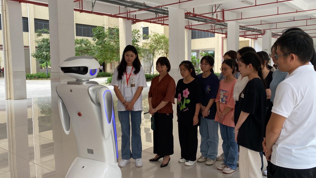 圖一:會(huì)計(jì)學(xué)院師生與智慧稅務(wù)實(shí)訓(xùn)中心智能機(jī)器人互動(dòng)