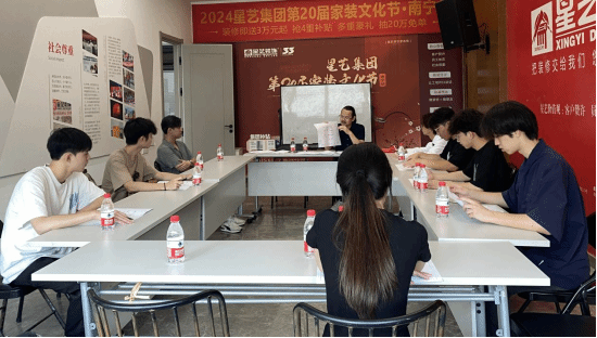 為了培育室內(nèi)設(shè)計(jì)現(xiàn)場工程師,經(jīng)校內(nèi)選拔,學(xué)生自愿參加,我信設(shè)學(xué)院與廣東星藝裝飾集團(tuán)股份有限公司南寧集成分公司擬培育一批室內(nèi)設(shè)計(jì)相關(guān)崗位人員。2024年7月5日,骨干教師陳揚(yáng)代表本院,帶領(lǐng)8名2022級(jí)室內(nèi)藝術(shù)設(shè)計(jì)專業(yè)學(xué)生前往廣東星藝裝飾集團(tuán)股份有限公司南寧集成分公司,跟企業(yè)零距離接觸,現(xiàn)場進(jìn)行筆試、面試,促進(jìn)學(xué)生崗位實(shí)習(xí)與就業(yè)意向,廣東星藝裝飾集團(tuán)股份有限公司南寧集成分公司李明總監(jiān)、李夏靈經(jīng)理熱情接待,雙方就深化校企合作與人才培養(yǎng)情況進(jìn)行座談交流。