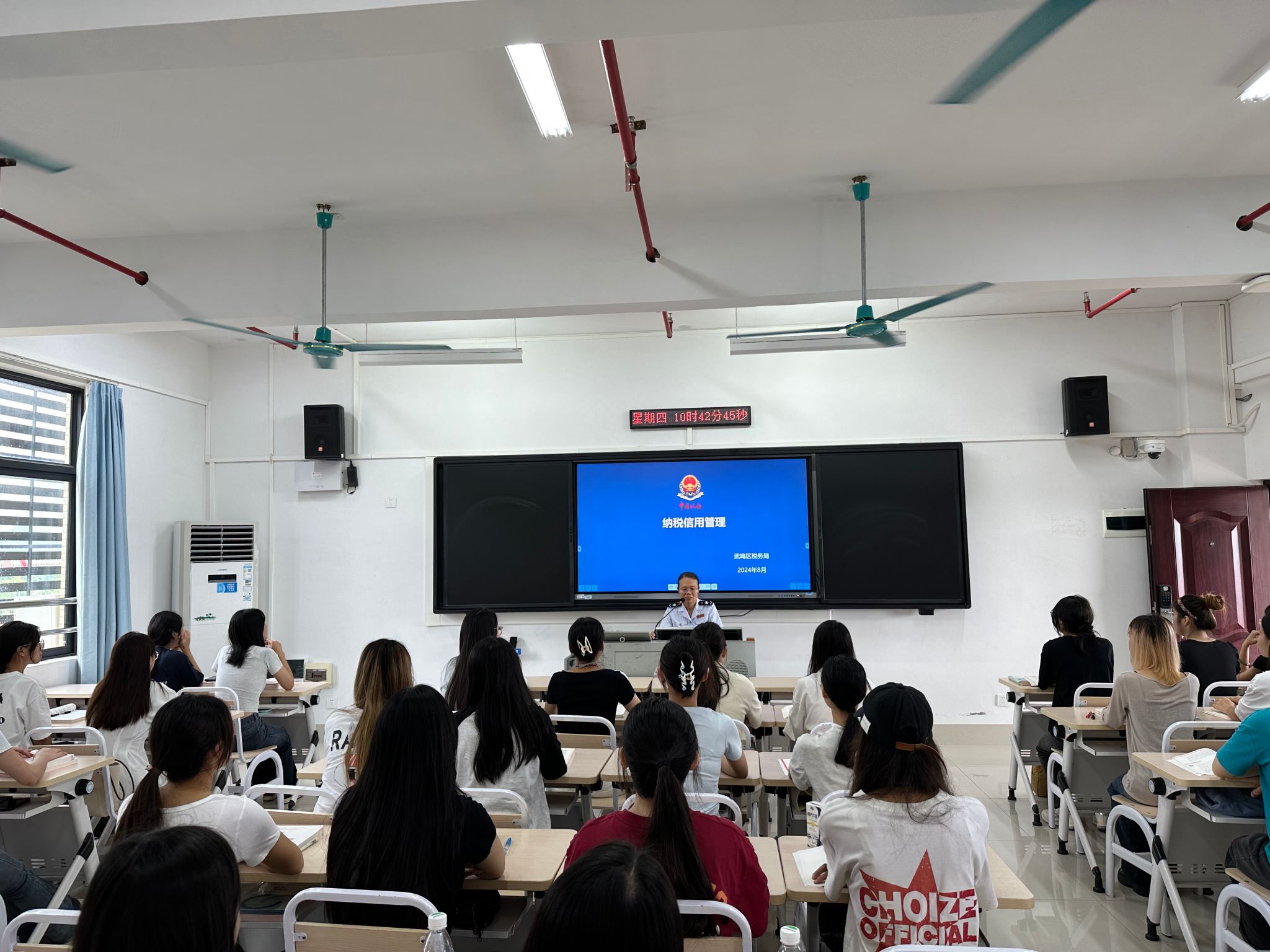 在稅收法治課堂上,李冰股長(zhǎng)以豐富的專業(yè)知識(shí)和工作經(jīng)驗(yàn)為大家講解了納稅信用主題的知識(shí),通過(guò)真實(shí)稅收案例的詳細(xì)講解,讓同學(xué)們更深刻地了解到納稅信用管理的適用范圍、評(píng)估方法、評(píng)價(jià)周期、信用級(jí)別等專業(yè)知識(shí),同學(xué)們認(rèn)真聆聽(tīng),態(tài)度端正。譚玉娥副院長(zhǎng)也在課上表示,希望通過(guò)此次開(kāi)學(xué)第一課,能有效促進(jìn)同學(xué)們新學(xué)期新知識(shí)的入門(mén)學(xué)習(xí),讓同學(xué)們?cè)谛聦W(xué)期的學(xué)習(xí)中更好地認(rèn)識(shí)稅收,理解稅收。課后,同學(xué)們紛紛表示獲益匪淺。