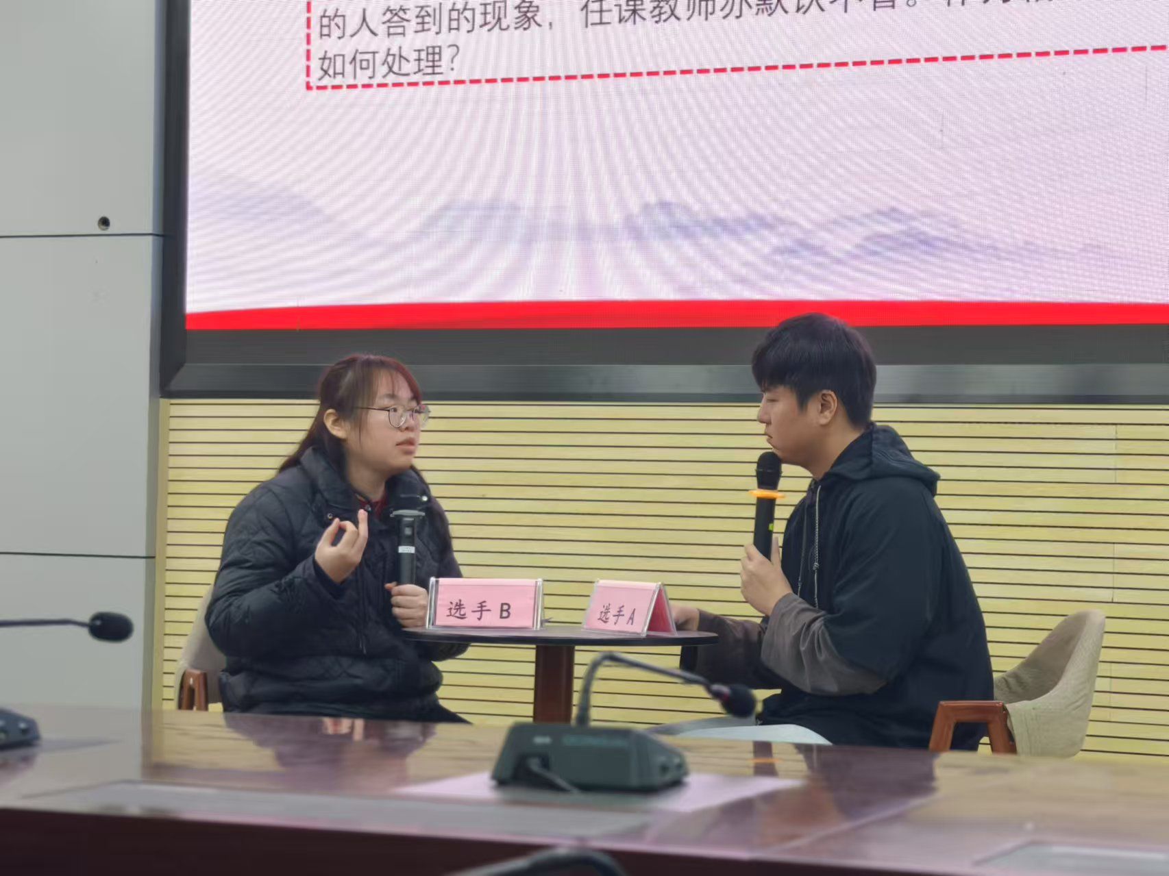 培訓(xùn)會上,入圍學(xué)校2025年輔導(dǎo)員素質(zhì)能力大賽決賽的輔導(dǎo)員進(jìn)行談心談話、案例研討兩個環(huán)節(jié)的實戰(zhàn)演練,三位專家根據(jù)選手們的模擬情況進(jìn)行點評,并針對案例研討環(huán)節(jié)的應(yīng)對原則、作答要點和提升方法進(jìn)行了深入解析,詳細(xì)講解了談心談話環(huán)節(jié)的最新賽制、考察重點、解題思路、備賽方法和實戰(zhàn)策略,強調(diào)要明確談話目標(biāo),善于抓住細(xì)節(jié),敏銳把握問題本質(zhì),把日常工作中對學(xué)生的真誠關(guān)懷自然呈現(xiàn)。