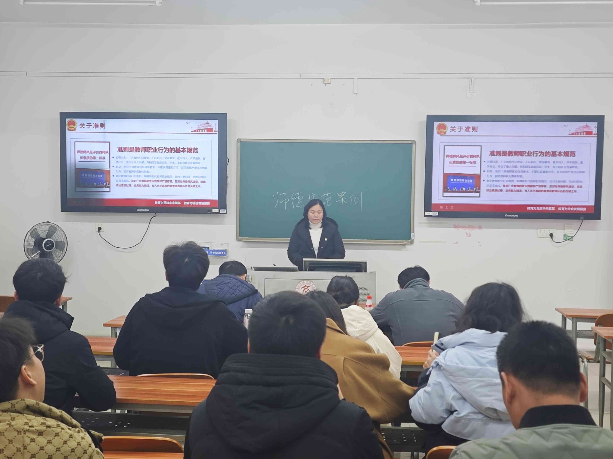 隨后全體教師重溫《新時代高校教師職業(yè)行為十項準則》,張麗勇書記對準則中的每一條內(nèi)容都進行了細致入微地解讀,引導(dǎo)教師們深入領(lǐng)悟準則所蘊含的精神實質(zhì)以及具體細則要求。她明確指出,這十項準則乃是教師職業(yè)行為的根本規(guī)范與準則,全體教師必須將其牢記于心、落實于行,將準則的各項要求全面融入日常教學(xué)、科研以及社會服務(wù)等各類工作當中,真正踐行為人師表、教書育人的崇高使命與目標,為學(xué)生的成長成才奠定堅實基礎(chǔ),為學(xué)院的發(fā)展建設(shè)貢獻力量。