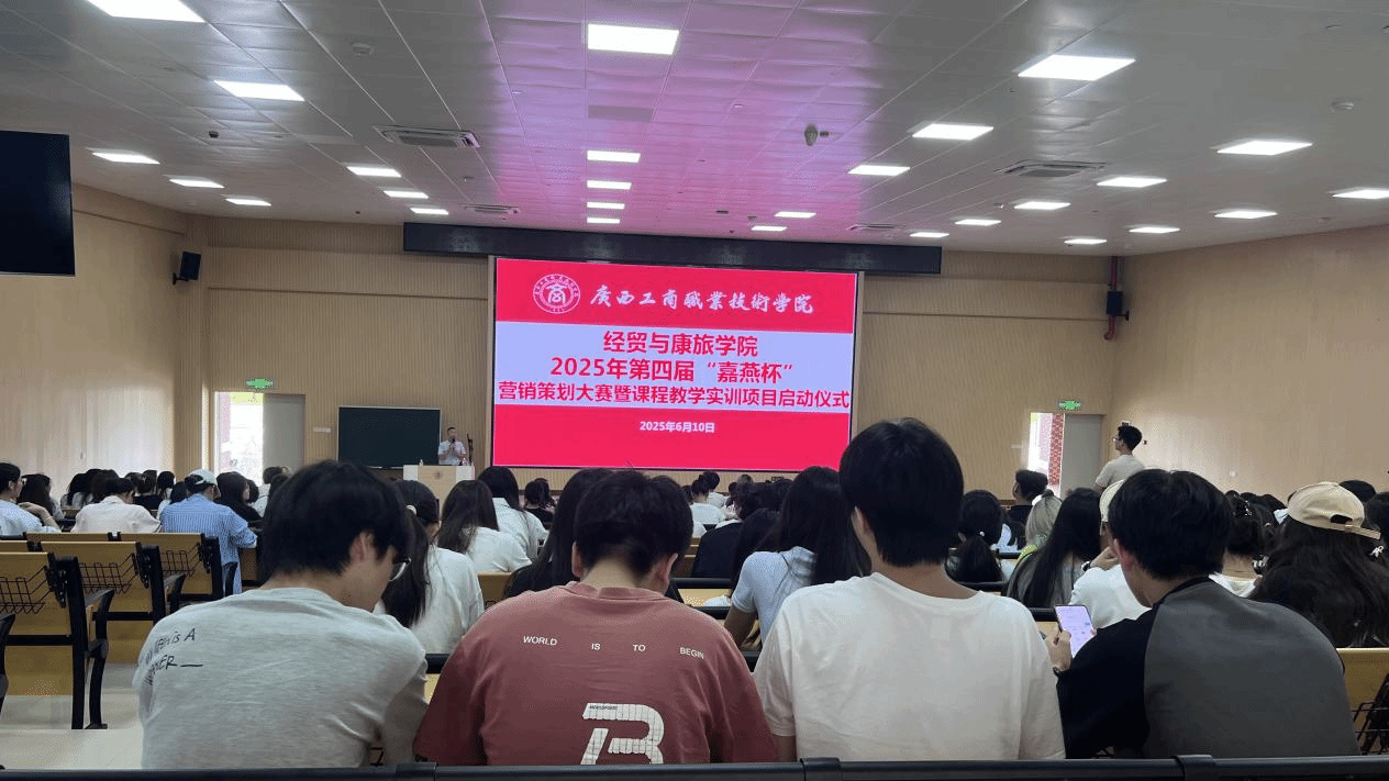 2025年6月10日,廣西工商職業(yè)技術(shù)學(xué)院經(jīng)貿(mào)與康旅學(xué)院2025年第四屆“嘉燕杯”營銷策劃大賽暨課程教學(xué)實(shí)訓(xùn)項(xiàng)目啟動儀式在武鳴校區(qū)舉行。校企雙方代表、師生兩百多人共同參與活動。