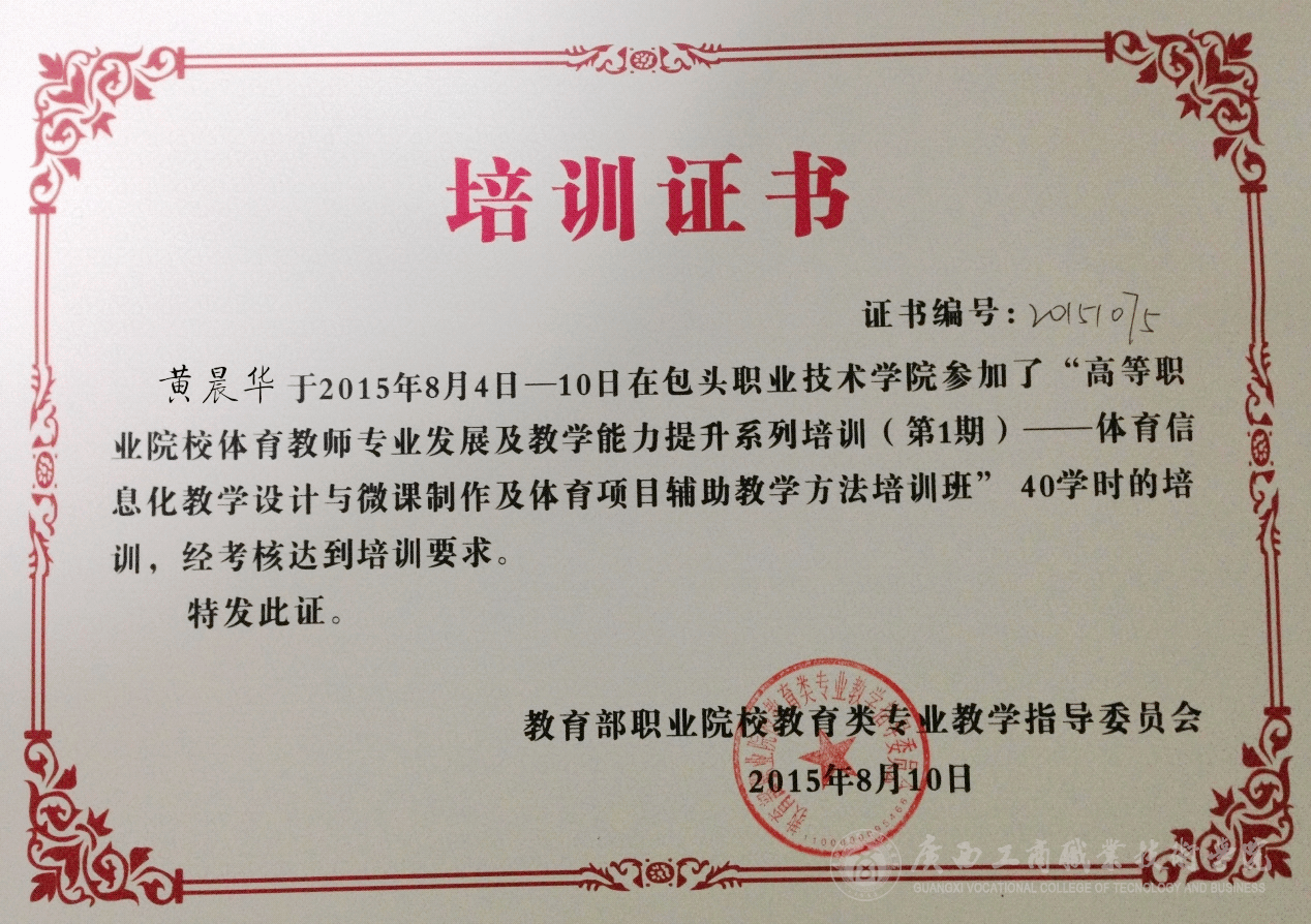 • 2015年8月4—10日,教育部職業(yè)院校教育類專業(yè)教學指導委員會在內(nèi)蒙古包頭市舉辦2015年全國高等職業(yè)院校體育教師專業(yè)發(fā)展及教學能力提升系列培訓(第一期)——體育信息化教學設(shè)計與微課制作及體育項目輔助教學方...