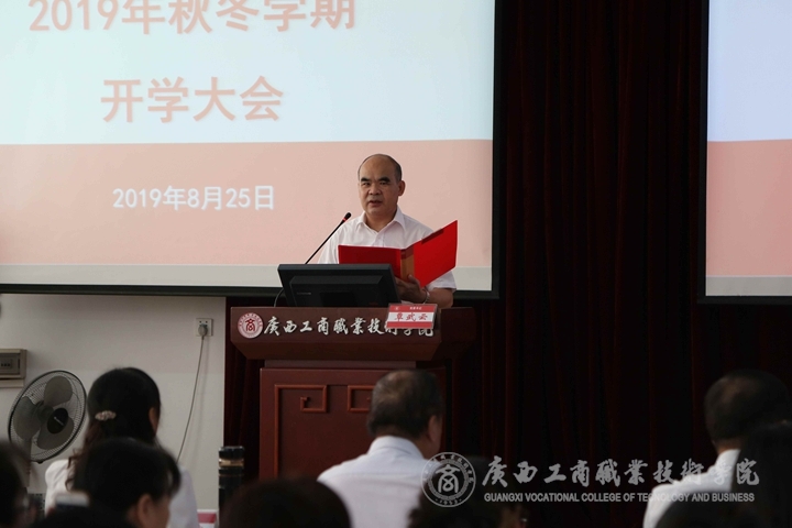 • ??????? 2019年8月25日上午,我院于校本部報(bào)告廳召開秋季開學(xué)大會(huì)。我院領(lǐng)導(dǎo)班子及全體教職工參加會(huì)議。學(xué)院黨委書記覃武云主持會(huì)議,院長(zhǎng)李維作開學(xué)工作報(bào)告。???????會(huì)議分為三個(gè)議程,一、新進(jìn)教師入職宣誓儀...